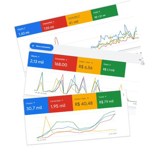 Monitoramento avançado, dashboards inteligentes e otimização diária. Performance orientada por dados que você pode acompanhar em tempo real.